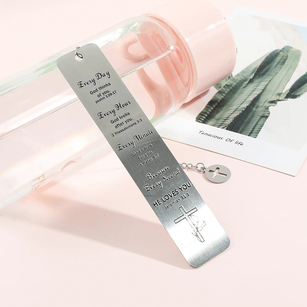 Mark your favorite pages with faith using this Jesus Cross Stainless Steel Hanger Bookmark. A perfect gift for Christians, bookworms, and readers who want to combine spirituality with their love of reading.